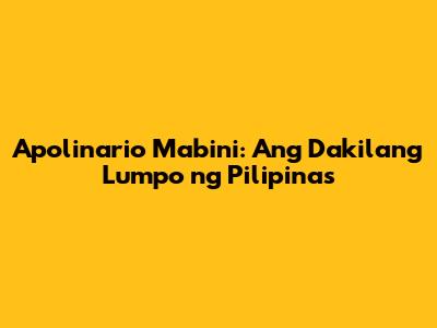 Apolinario Mabini: Ang Dakilang Lumpo Ng Pilipinas
