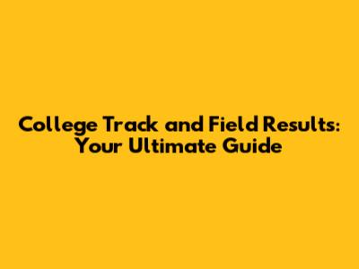 College Track And Field Results: Your Ultimate Guide