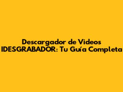 Descargador De Videos IDESGRABADOR: Tu Guía Completa