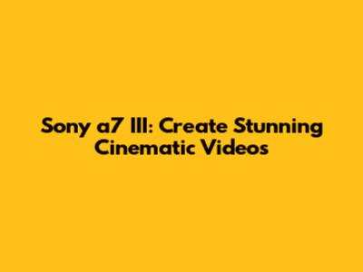 Sony A7 III: Create Stunning Cinematic Videos