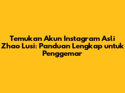 Temukan Akun Instagram Asli Zhao Lusi: Panduan Lengkap Untuk Penggemar